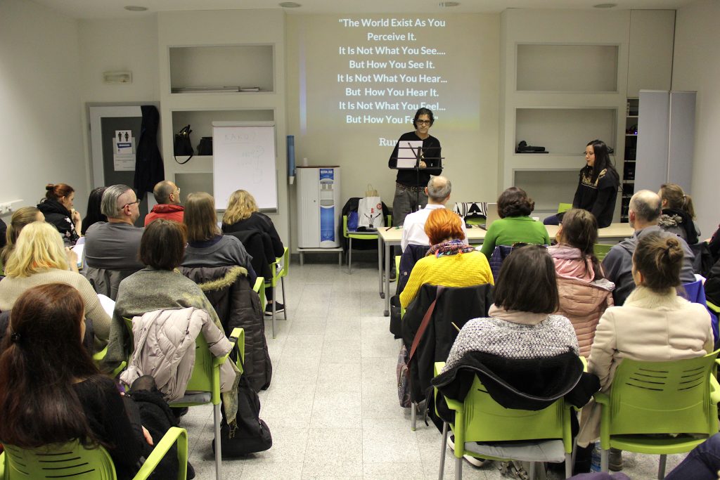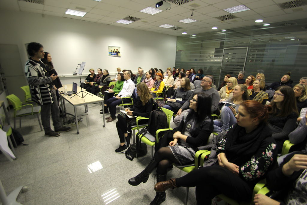 The lecture is translated from English to Slovene